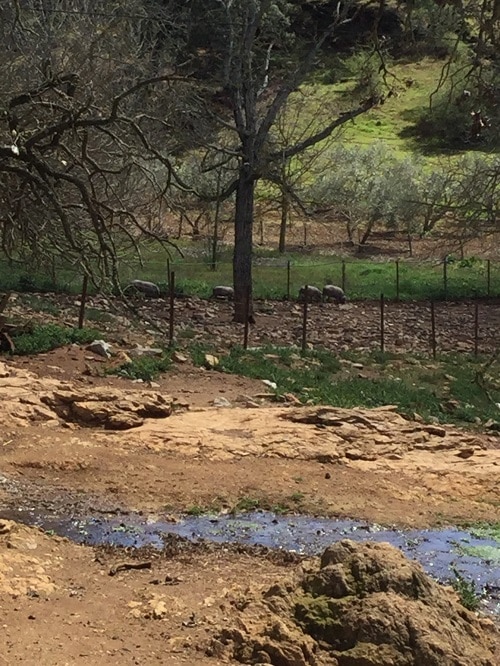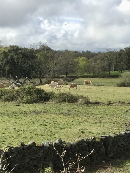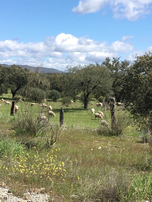 Luonto Extremadurassa on kaunista. Ajaessamme ihastelimme laajoja vehreitä metsä- ja peltoalueita. Alueella nähtiin paljon ja isoja sika-, lammas- ja lehmälaumoja syömässä ruohoa tammipuiden varjossa. Alueella tuotetut juustot ja kinkut onkin maailmankuuluja.