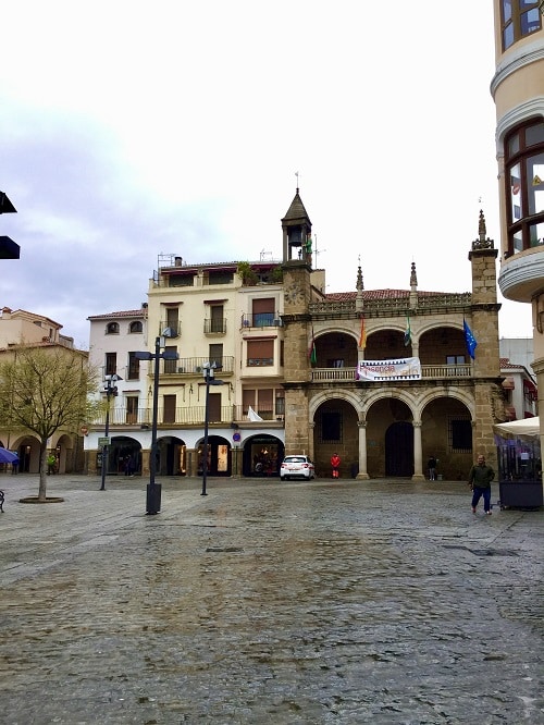 Klikkaa Cáceres postaukseeni kuvasta. Kuvassa Cáceresen Plaza Mayor