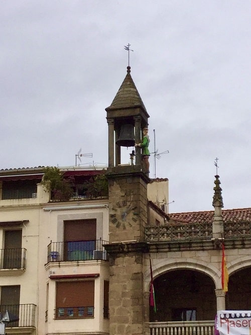 Monfragüesta ajettiin yöksi Plasenciaan. Sää oli niin huono, että oikein mihinkään ei innostanut lähteä. Pikaisesti kävin Plasencian uudessa ja vanhassa katedraalissa ja Plaza Mayorilla kuvaamassa kaupungintalon ja sen kuuluisan kellotornin ja siinä seisovan patsaan.