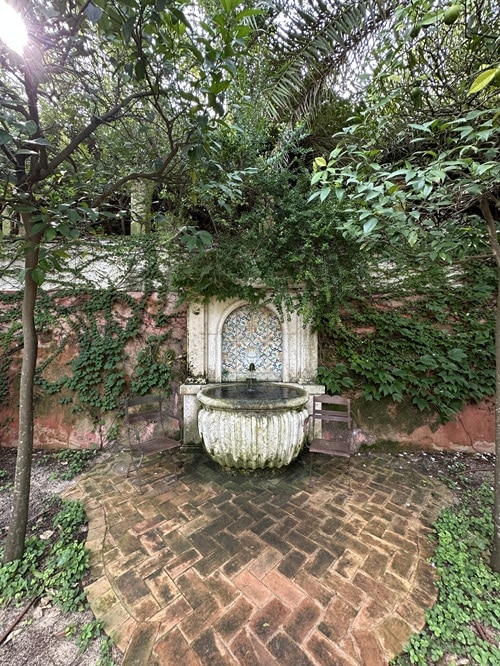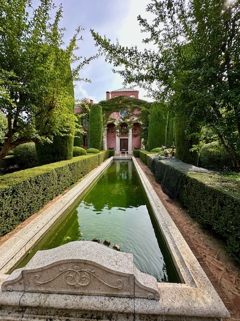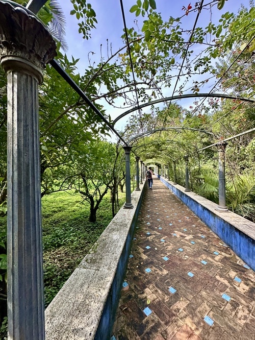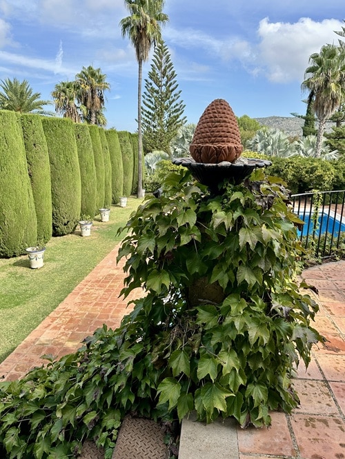 Kuljimme mielenkiintoisia polkuja pitkin, näimme matkalla pergoloita, huvimajoja ja kauniita suihkulähteitä ja tietysti valtavan määrän erilaisia puita, pensaita ja kukkia. Mainita täytyy myös puutarhan lukuisat patsaat ja tietysti Enrique Montoliun upea kartanorakennus.