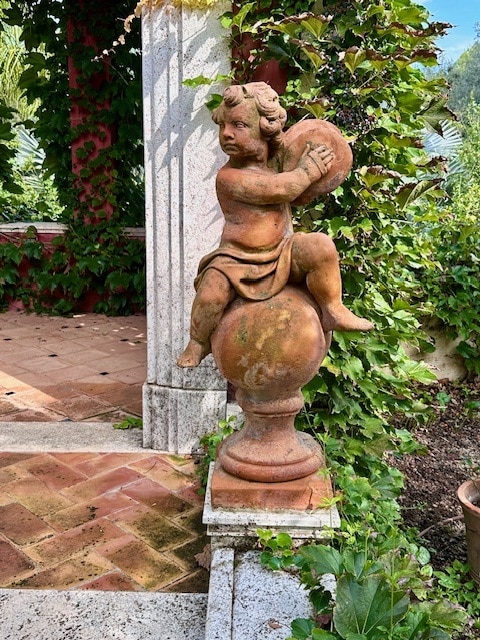 Patsaita oli myös paljon ja niiden aiheet ja sijoitukset oli kivoja – esimerkiksi tuo metsänneito patsas joka on drinkillä puun varjossa. Sen näet heti kun tulet puutarhaan. Tavallaan kohottaa lasiaan tervetuloa toivotukseksi.