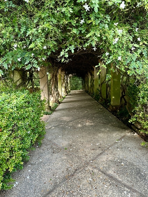 Kuljimme mielenkiintoisia polkuja pitkin, näimme matkalla pergoloita, huvimajoja ja kauniita suihkulähteitä ja tietysti valtavan määrän erilaisia puita, pensaita ja kukkia. Mainita täytyy myös puutarhan lukuisat patsaat ja tietysti Enrique Montoliun upea kartanorakennus.