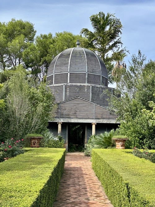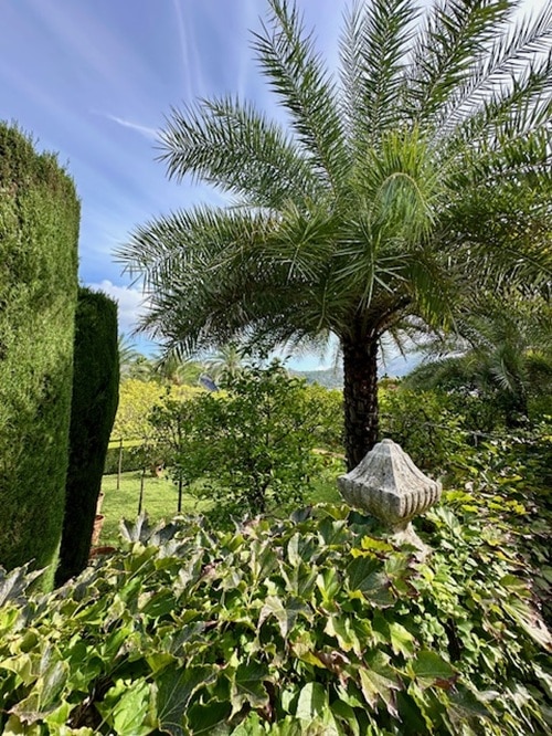 Tässä osassa oli suunnittelussa otettu huomioon sen eri osista avautuvat näkymät. Kun sieltä katsoi kauemmaksi eteenpäin, näki aina kun taulun, jossa jotain mielenkiintoista, huvimajan, patsaan, suihkulähteen tai eri värisiä palmuja kasvamassa ryhminä. Varmasti harkitusti mietittynä yksityiskohtina. Olin kauan suunnitellut ja haaveillut tätä puutarhavierailua. Juuri nämä eri näkymät, eri kasvien sommittelu ja mielenkiintooiset patsaat olivat puutarhan parasta antia. Mukaan lähti monta ideaa omaankin käyttöön.