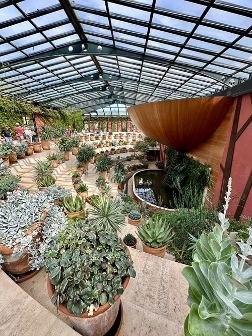 Kuten jo mainitsin, puutarhan suunnittelussa on otettu huomioon tarkasti eri kasvien vaatimat olosuhteen. Esimerkiksi luomalla varjoja voidaan säästää kasvien tarvitsemaa veden määrää. Tähän varjostukseen kuuluu myös puutarhan erikoisen muotoinen kupolirakennus. Sen seinät ja katto on pelkkiä metallirimoja, jotka on määrätyssä järjestyksessä ja lähellä toisiaan. Näin on luotu sisään ”ilmasto” joka on viileä Costa Blancan kuumina kesinä. Talon sisälle on sitten istutettu niitä kasveja, jotka kärsivät liiallisesta helteestä.