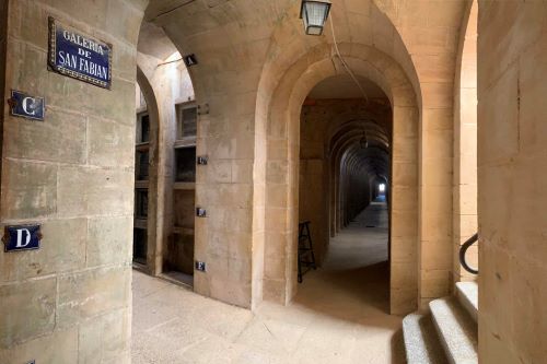 Käytäviä on 3 ja niillä on omat sisäänkäynnit, mutta ne on yhteydessä toisiinsa. Ne on myös nimetty San Severo, San Fabián ja San Antonio käytäviksi. Vuodesta 1895. Niissä on luonnon ilmastointi. Sen huomasi siitä, että alhaalla maan alla ei ollut yhtään tunkkainen haju. Valaistus tuli hienosti oviaukoista vaikka sähkövalotkin oli katossa. Nämä ”katakombit” olivat taas minulle todellinen ”wau” kokemus. Tälläisiä ei muualla Espanjassa ole hautausmailla.