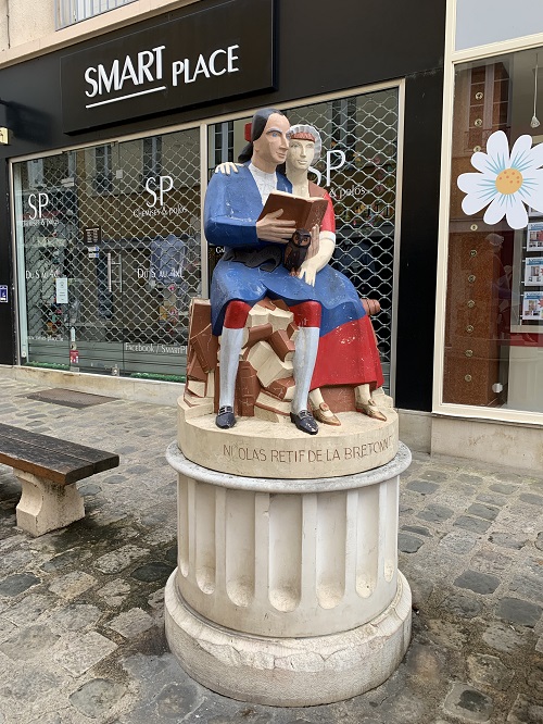 Nicolas Retif de la Bretonnen patsas. Kaunpunkia kutsutaan myös taiteen kaupungiksi. Hän lienee kirjailija