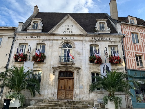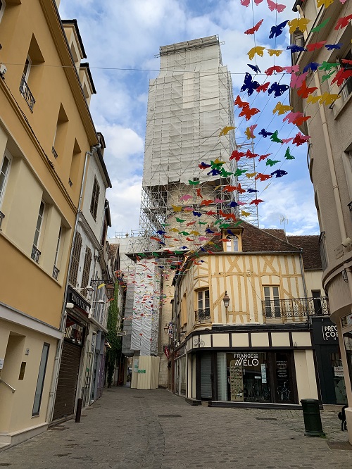 Harmiksemme kaupungin kuuluisa kello, Tour de l’Horloge d’Auxerre, oli rakennustelineiden peitossa. Restaurointi on kuulema valmis vuonna 2022. Kellotorni rakennettiin 1400-luvulla. Kello on kaksipuolinen ja toisin kuin monet muut tällaiset kaksipuoliset kellot, molemmat puolet ovat suhteellisen samanlaisia. Tämä kello on erikoinen siinä mielessä, että kellonajan lisäksi se näyttää ”astrologisen ajan”, toinen viisari osoittaa auringon ja toinen kuun liikkeitä. Kello on rakennettu kaarisiltaan, joka yhdistää tornirakennuksen kaksi osaa. Kellotorni sijaitsee kaupungin keskiaikaisessa keskuksessa, joka sijaitsi muutaman sadan metrin päässä hotellistamme.