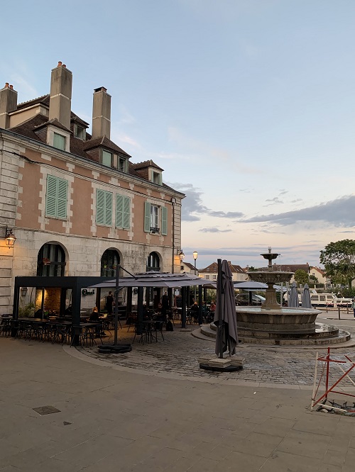 Kierreltiin kapeilla mukulakivikaduilla, ihasteltiin keskiaikaisia taloja, syötiin pizzat Sain-Nicolasin aukion ravintolaterassilla. Viehättävä paikka ja viehätystä lisäsi se Ranskan tiukka korona-ajan piirre, että ei edes ulkoterasseille päässyt istumaan ja tilaamaan juomaa tai ruokaa ilman koronapassia. Tieto, että kaikilla asiakkailla on kaksi koronarokotusta tai tuore negatiivinen koronatestitodistus lisäsi kyllä herkulliseen makunautintoon vielä hienon lisätwistin.