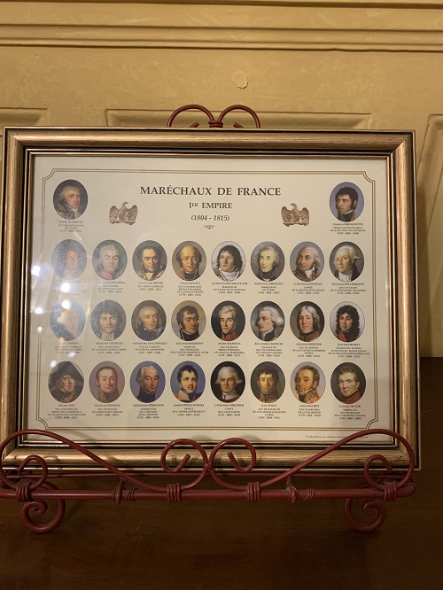 Vuonna 1854 pariisilaistuomarien perhe rakensi leirin paikalle Napoleon tyylisen kartanon. Rakennus restauroitiin 1980 ja siitä tuli tämä meidän hotelli Hôtel Les Maréchaux. Hotellin nimi siis tulee Napoleonin marsalkoista. Aulassa on kuvataulu kaikista ja hotellihuoneet on nimetty heidän mukaansa. Huoneen avaimenperiä myöten on ajateltu historiaa.