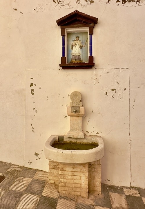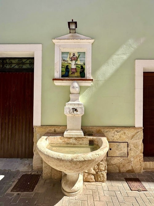 Tämän valtavan puun vieressä on yksi Biarin monista juomalähteistä. Niitä kohtasimme monilla kaupungin kapeilla kujilla ja aukioilla.