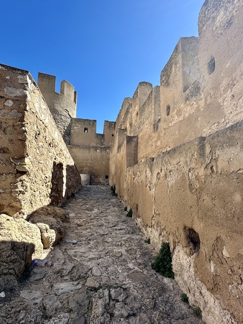 Linnassa on ulkomuuri, jossa on torneja. Mielenkiintoinen yksityiskohta mielestäni on, että ulkomuureja on vain eteläpuolella. Pohjoispuolella kun niitä ei tarvia, sillä siellä on jyrkkä kallioseinämä. Uloimman muurin sisäpuolella on vielä linnoitettu sisäpiha, eli linnassa on tavallaan kaksoismuurit. Sisämuurissakin on tornit. Sisäpihalla on tuo mudehar-torni.