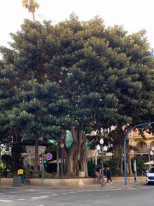 Alicantessa jos käy näkee näitä vaikuttavia ”jättiläisiä”. Miettii mitähän ne ovat nimeltään Puun nimi on tyyliviikuna/Australian viikuna, ficus macrophylla, Moreton Bay fig/Australian banya Kasvin alkuperämaa
