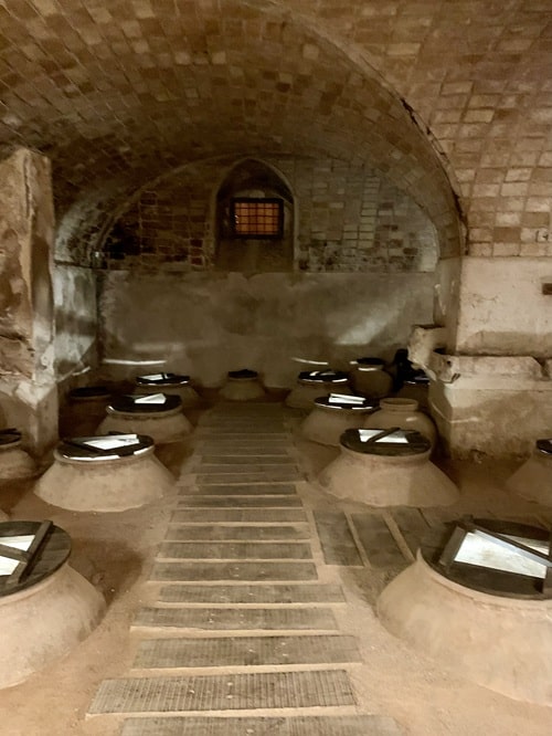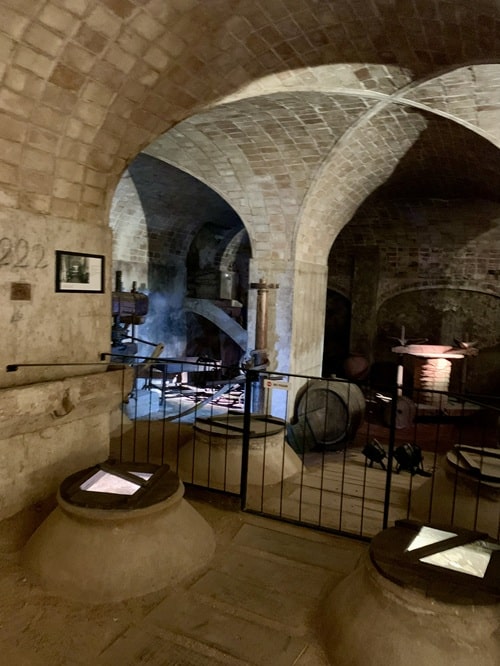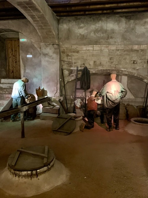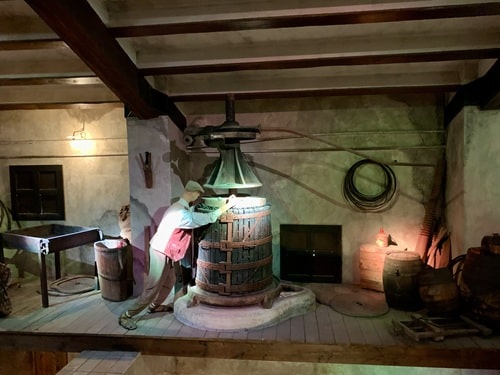 Museo on kokonaisuudessaan mielestäni kaunis ja mielenkiintoinen. Siellä oli erilaisia tiloja, joissa ihmisen kokoiset nuket oli asetettu erilaisten työtehtävien pariin. Kuin nukkekoti mutta luonnollisessa koossa. Suurimman vaikutuksen minuun teki isot holvihuoneet joiden lattian alla oli viininsäilytyskammioita. Suuaukot olivat vähän koholla lattiasta ja niissä oli lasikannet, joista näki alas kammioon. Oletan, että ne ovat autenttiset viinivaraston osat. Onhan museo entisessä viinikellarissa.