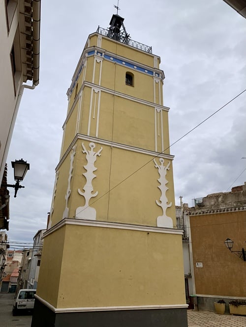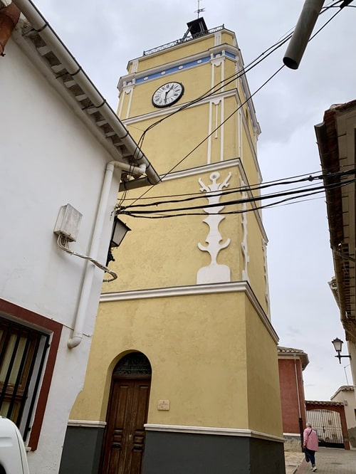 Kiertelimme markkinoiden jälkeen vielä kaupungilla. Joka puolella oli paljon ihmisiä, kahvilat ja ravintolat tupaten täynnä. Tallaisen kellotornin löysimme myös. Ihan samanlainen on myös Pliegossa, josta kirjoitin jo jutun tänne blogiin.