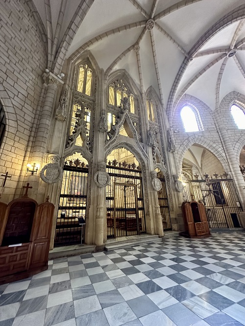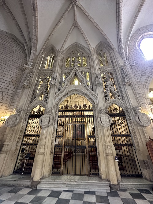 Jos olen ymmärtänyt oikein, kappeli oli ensin erillinen rakennus, mutta se liitettiin 1400-luvun lopun ja 1500-luvun alun välillä päärakennukseen. Tämän monikulmaisen kappelin voi nähdä ulkoa katedralin takana Plaza de los Apóstoles -aukiolta.
