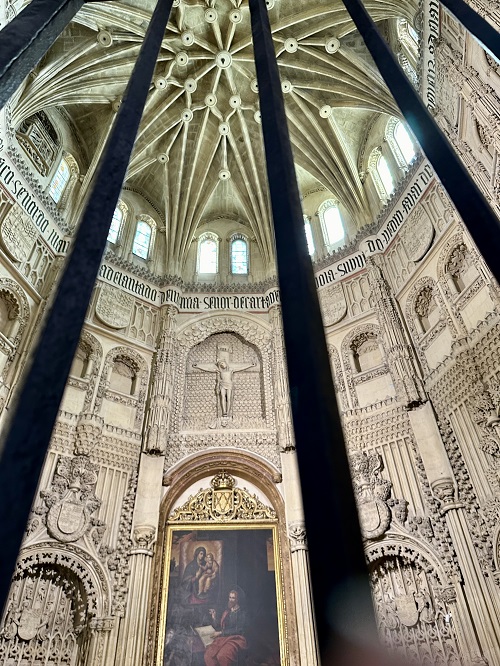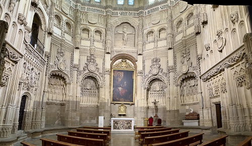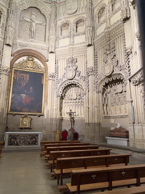 Rakennustyyliltään kappeli on gotiikkaa, jossa on renessanssin ja mudejarin elementtejä. Kappelia kuvaisin sisäpuolelta ylellisen ylenpalttiseksi. Vähän kun kermakakku. Ei voi kun ihmetellä ja ihastella sen taidokkaasti koristeltuja kiviseiniä. Kivestä ne on tehty mutta miten!