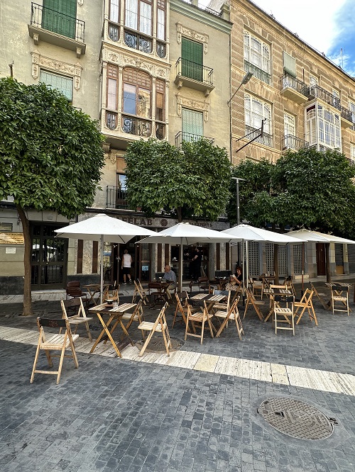 Plaza de los Apóstoles -aukiolla on kahvila nimeltä CafeLab. Tilasin tostada con jamón y queso. Minulle tuotiin paahdettu moniviljaleipä, jossa tomaattimurskan lisäksi kinkku ja runsaasti jotain pehmeää mietoa sulatejuuston tapaista juustoa. Kinkku oli todella hyvälaatuista, ihan suli suussa, ei ollut sitkeää. Koko annos oli iso ja maittava. Ehkä paras tostada mitä Espanjassa olen syönyt. Tee oli haudutettua.