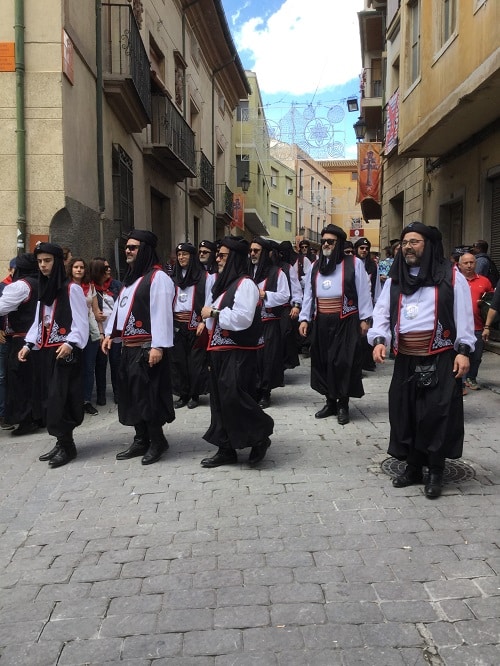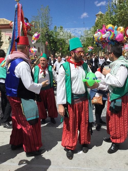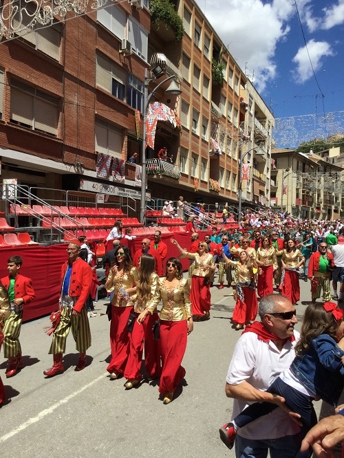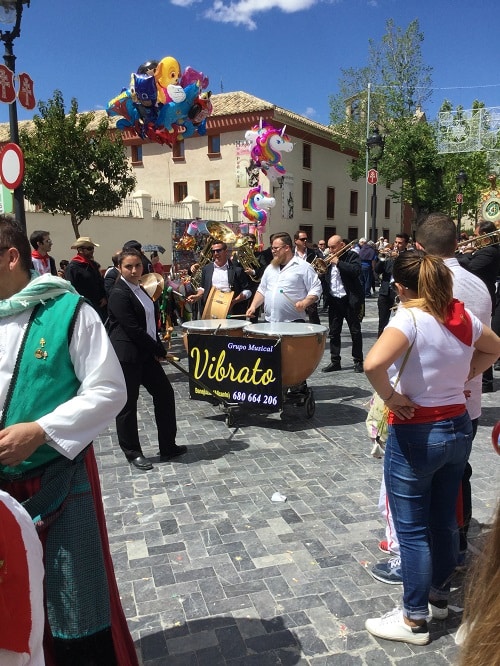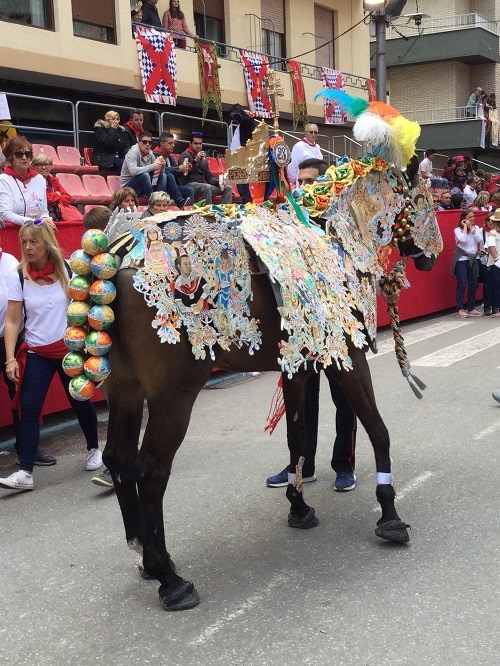 Nämä hevoset tuodaan juhlan aikana kaupunkiin paraateihin ja niitä esitellään mielellään kaikille. Juhlaan kuuluu hienoimman puvun valinta, paraslaatuinen hevonen jne. Tärkeä päivä ja tapahtuma on kuitenkin hevoskilpailu, jossa hevoset vierellään neljä peñan jäsentä (2 kummallakin puolella juosten hevosen vieressä) kilpailevat suuren väentungoksen keskellä nopeudesta. Nopein hevonen ja peña voittaa. Kikkana kuitenkin on, että kaikki neljä juoksijaa pysyvät koko matkan hevosen mukana pitäen kiinni hevosesta. Markkeeraisiko tämä sitä kilpajuoksua viinileilien kanssa, kun temppeliritarit kuljettivat juotavaa kyläläisille ja maurit ajoivat heitä takaa. Tähän liittyvä tarina/legenda on kerrottu vähän alempana olevassa kappaleessa.