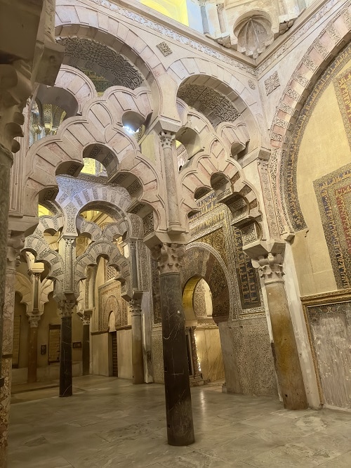 En ole koskaan aikaisemmin käynyt moskeijassa ja nyt kun talvella 2024 Cordoban suuressa moskeijassa vierailin, otin tietysti etukäteen vähän selvää millaisia paikkoja moskeijat ovat. Siitä avautuikin ihan uusi maailma, termeineen ja tapoineen. Cordoban moskeija-katedraalissa on onneksi säilynyt sen tärkein islaminuskoon liittyvä alue kristinuskon elementeiltä, eli edelleen voi aistia millainen islamilainen palvontapaikka moskeija on ollut, vaikka paikka virallisesti onkin katollinen katedraali. Katedraaliosasta kirjoitin postaukseen no1. Linkki tässä.