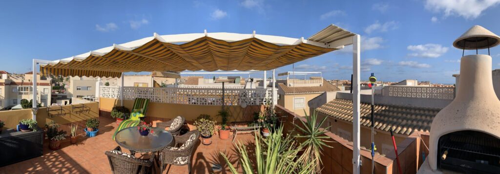 Kun periaatteessa kaikki tekemisemme Espanjassa perustuu ulkona olemiseen on säällä iso merkitys. Asunto on pieni mutta meillä on kaksi terassia, joista toinen toimii isona olohuoneena niin päivällä kuin myöhään illalla. Siksi on tietysti tärkeää, että ”olohuoneeseen” ei sada sisään vettä.