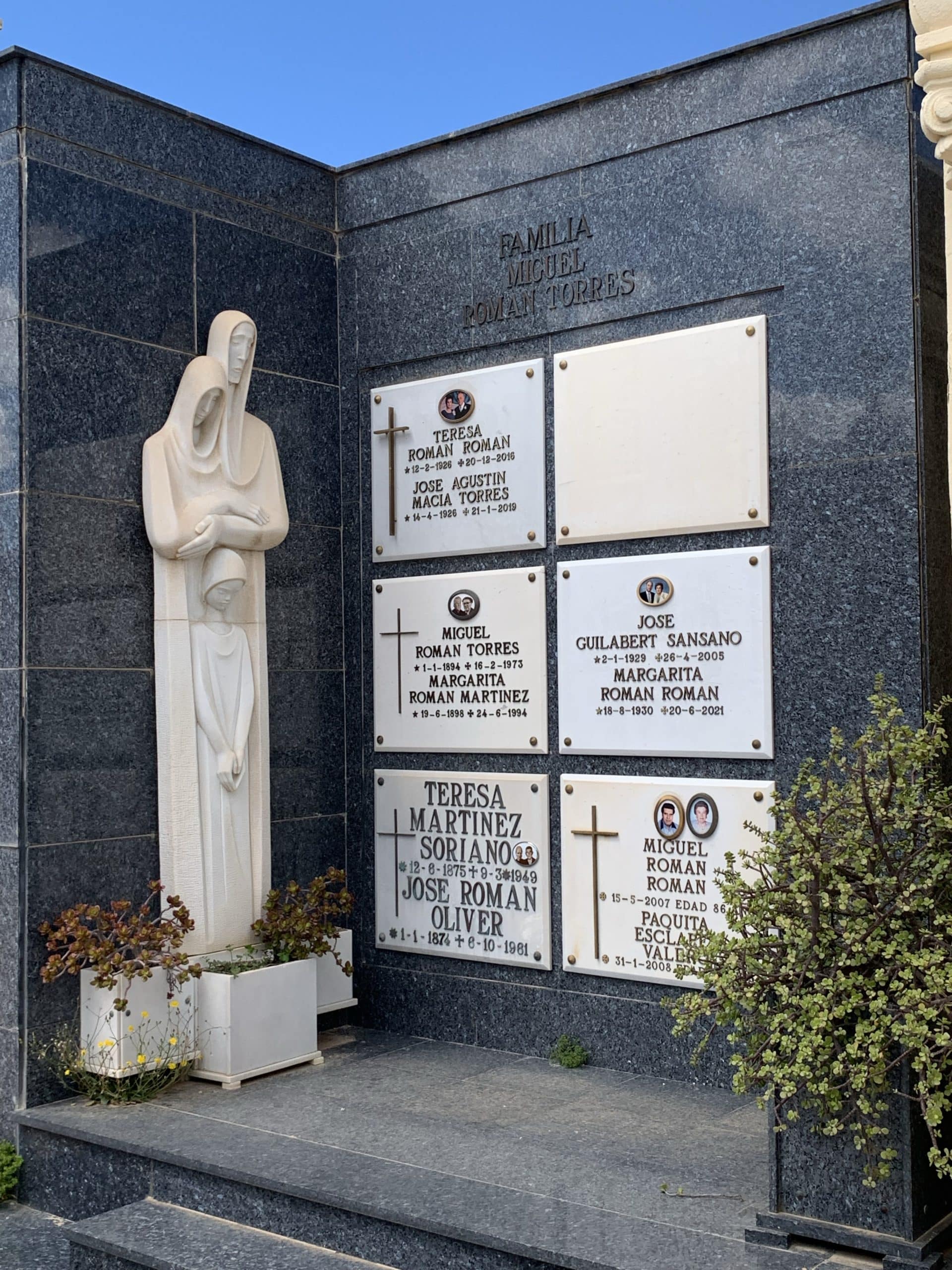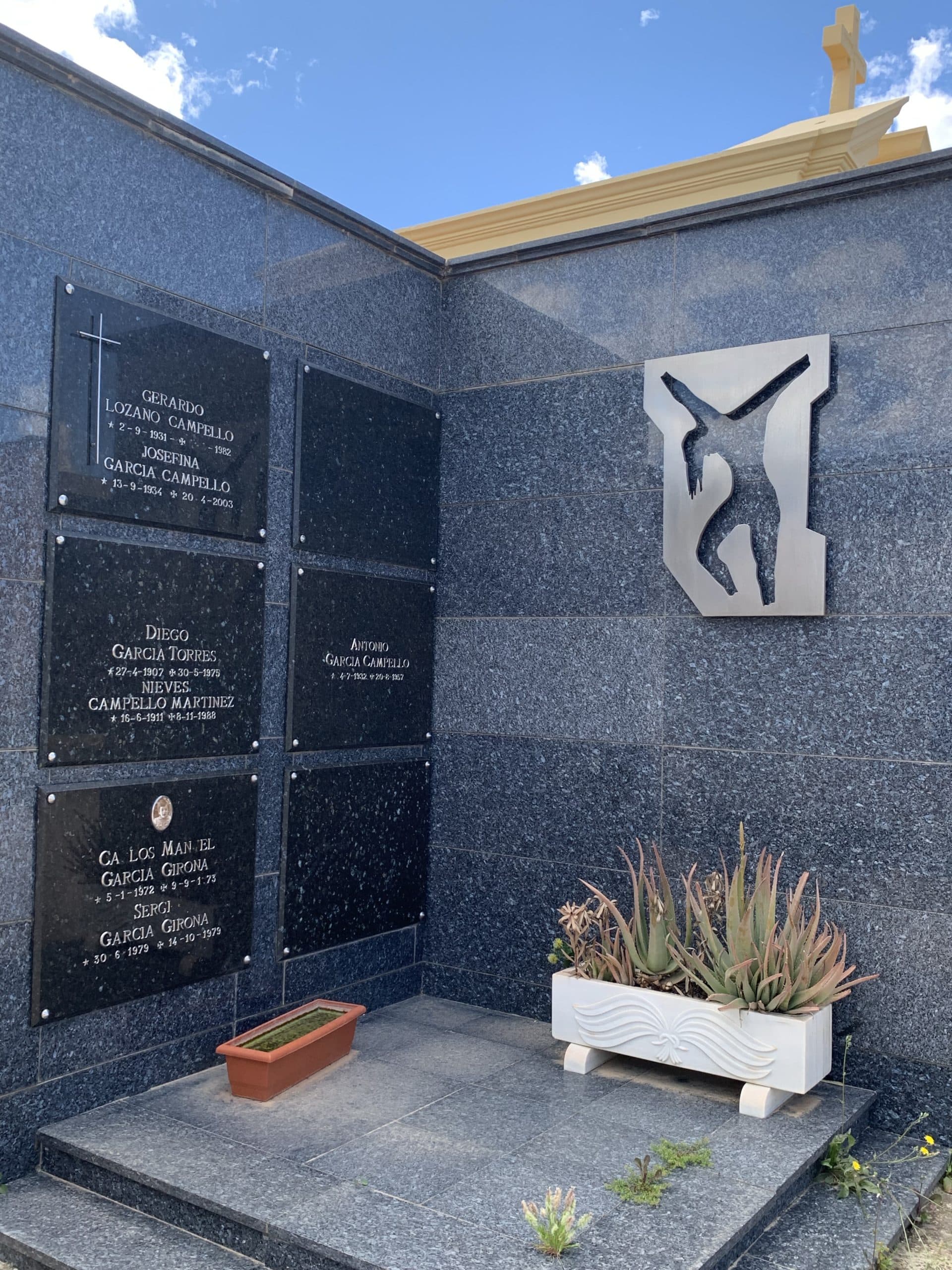No täällä hienossa Elchen vanhan hautausmaan Panteonissa hänen maalliset jäänteensä makaavat. Panteon kuuluu Ibarra Santamarian perheelle ja Campello Revengan leskelle.