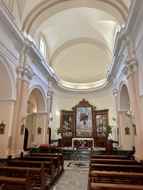 Kirkko on heti museon sisäänkäynnin vieressä. Pieni kaunis kirkko