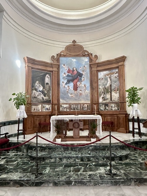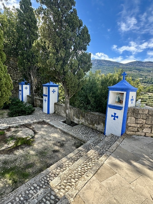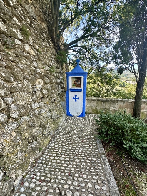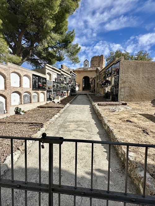 Linnan kupeessa on myös kylän pieni hautausmaa. Kaunis paikka ja polun varrella voi taas jälleen bongata Mojón pylväät.