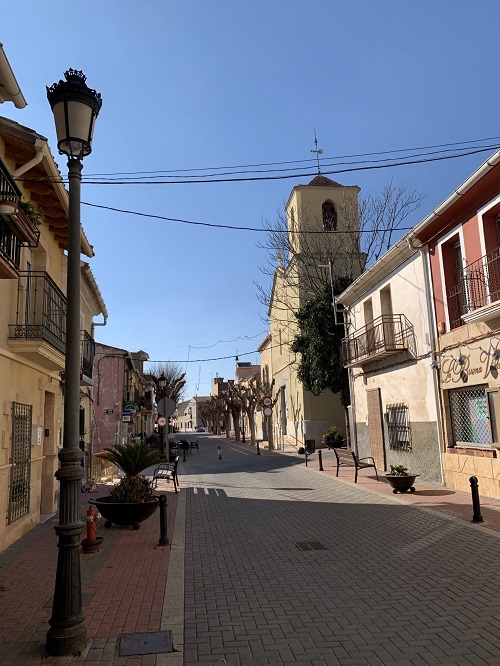Iglesia Virgen de la Salud -kirkko on kylän kauniilla kävelykadulla. Kirkon kello on hiljattain korjattu. Kadun varrella on monia ravintoloita, vanha kaupungintalo ja joitakin liikkeitä. Kaikki on ”minikokoisia” taloja erilaisine julkisivuineen. Jopa kirkon kupolikin oli minikokoa. Katua pitkin kävellessä tuli mielikuva, että kävelee nukkekotikylässä. Kaikki oli pientä. Montaakaan kaksi- tai kolmekerroksista taloa ei kaupungissa nähty. Monen talon seinällä oli laatta, jossa oli kylän suojelupyhimyksen kuva. Tälläisiä nähtiin todella paljon.