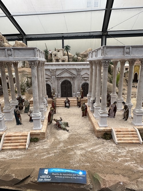 Minun seimibongaus alkoi tietty Torreviejasta, jossa on kaksi seimeä joihin tutustuin. Toinen kaupungin suuri seimi Plaza Constituciónilla. Tämä seimi on tänä vuonna saanut hienon ”lasikopin” ympärilleen. Seimen kohtauksia on myös uusittu. Hienoa tässä seimessä mielestäni on sen monet liikkuvat osat, musiikki ja vesi. Uskon, että lapset varsinkin tätä seimeä innoissaan tarkkailevat. Itse lapsena kun joskus pääsin Helsinkiin katsomaan Stokkan jouluikkunaa niin olihan se ihmeellistä kun tontut liikkuivat. Torreviejan kaupungin jouluseimessä on aina kaupungille ominaiset piirteet mukana. Tuulimylly, suolasatama, suolavuoret, las Columnas pylväät ja tietysti torreviejalaisten kotikirkko. Yli 500 hahmoa ja arkkitehtonista elementtiä on tässä seimessä.