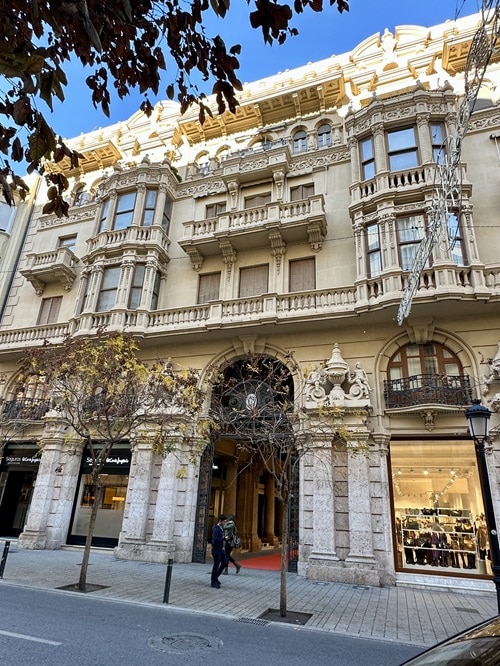 Talon ja sen kauppakäytävän suunnitteli vuonna 1925 (tänä vuonna 100 vuotta sitten) valencialainen arkkitehti Buenaventura Ferrando Castell. Rakennuttaja oli pormestari Gabriel Lodares. Hän oli La Manchasta kotoisin. Hän rakennutti tämän hienon kauppagallerian ja samalla asuinrakennuksen. Esikuvana oli Italian vastaavat kauppakujat. Tuloksena oli kaunis modernismin(jugendtyylinen) helmi, joka on yksi kolmesta Espanjassa säilyneistä tuon tyylin gallerioista. Muut kaksi ovat Valladolidin ja Zaragozan kauppakujat.