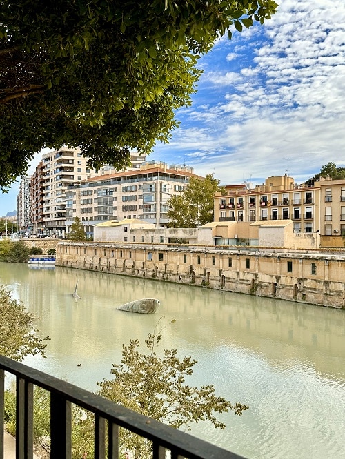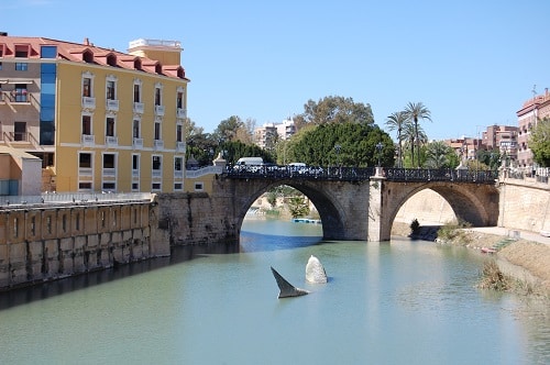 Minä olen käynyt aika usein Murciassa. Kaupungissa on paljon mielenkiintoista nähtävää ja hyviä liikkeitä hankkia vähän jotain erikoistakin. Usein pysähdyn käynnilläni hetkeksi tälle vanhalle Puente de los Peligros sillalle. Katselen joella uiskentelevaa jättisardiinia, 23 m pitkää 13 tonnia painavaa patsasta, Monumento al Entierro de la Sardina. Joskus, en kyllä tiedä milloin, sen suustakin tulee todella korkea vesisuihku.
