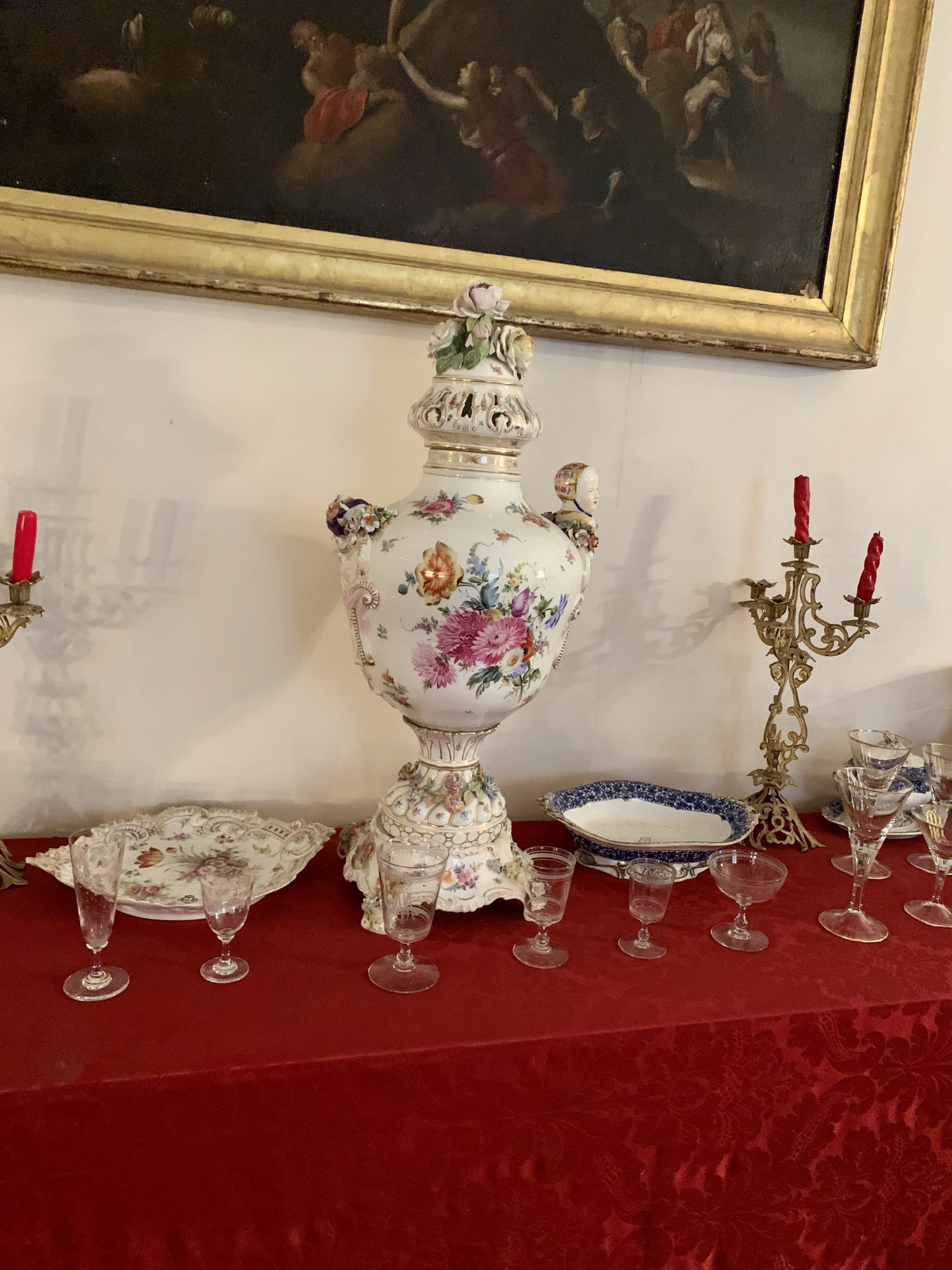 Me tosiaan osallistuimme yhteen tälläiseen opastettuun kierrokseen talon sisällä. Kun odottelimme ryhmän muodostumista eteisaulassa sisään köpötteli hyvin vanha hienostunut herrasmies sadeviitassaan ja kumisaappaissaan ja poistui yhteen talon huoneista. Opas mainitsi hänen olevan talon nykyinen asukas Sabater perheen pää, joka nyt vuonna 2019 asui talossa ja jonka vaimo on teettänyt viimeiset isot restaurointityöt vuonna 1966.