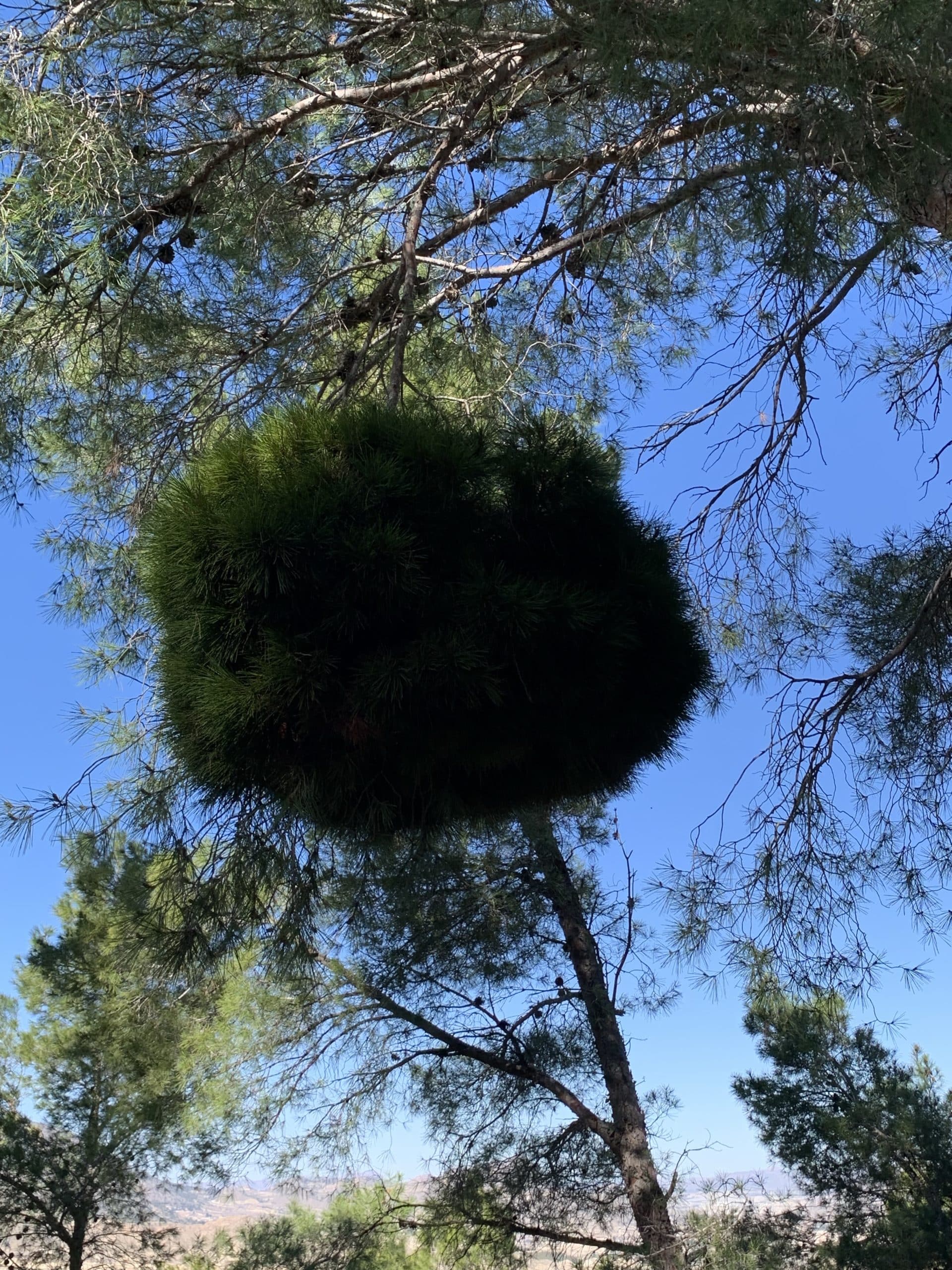 Maisemat muuttuu jälleen. Kuljetaan mäntymetsässä, oikealla hienot näkymät esimerkiksi Abaránin kaupunkiin, jossa olisi mielenkiintoinen vesiratas reitti joen rantaa pitkin. Kaempana näkyy Ciezan kaupunki. Männyissä ihmettelemme suuria tummanvihreitä roikkuvia havupalloja. Näitä kutsutaan täällä nimellä Escoba de Bruja – noidan luuta. Meillähän Suomessa vastaavia tapaa lehtipuissa ja niitä kait sanotaan tuulenpesiksi.