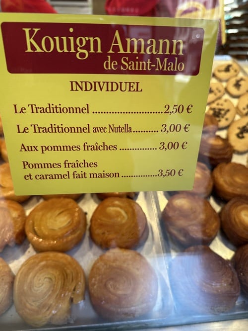 Kaupunkia ympäröivältä muurilta näki rannikon pienet saaret ja niillä olevan linnoitukse. Meitä ne nyt ei kiinnostaneet kun retki oli vain päivän piipahdus läheisestä Dinanista, jossa sitten vietimmekin enemmän aikaa. Ehdittiin kuitenkin lämmitellä paikallisessa ravintolassa letuilla. Oli nimittäin tosi kylmä tuuli. Kaupungilta napattiin mukaan vielä alueen erikoisuudet Kouign Amann rasvapullat.
