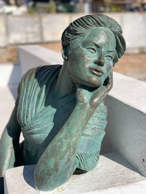 Saman neidon löytää myös kaupungin pitkältä aallonmurtajalta, sen puolesta välistä. Siellä La Bella Lola seisoo ja tähyilee merelle ja näyttäisi vilkuttavan jollekin laivalle kädessään nenäliina. Tai niin minä patsaan asennon ja muodon tulkitsen.
