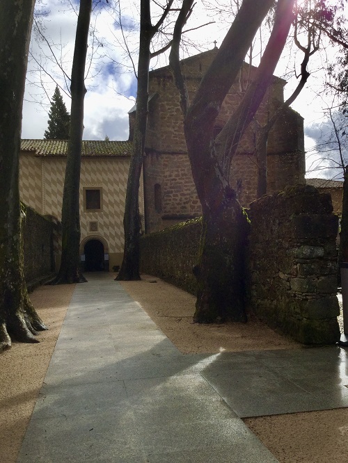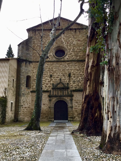 Kirkosta minulla ei ole yhtään kuvaa kun sinne emme käyntimme aikana päässeet sisään. Harmittaa. Siellä olisi ollut nähtävänä kuuluisa kopio Tizianon taulusta La Gloria. Tauluun liittyy mielenkiintoinen tarina. Carlos I vei sen alkuperäisen Tizianon mestarityön Yusten luostarin kirkkoon, koska halusi nähdä sen kun kuolee. Hän sen aikanaan tilasi Tizianolta. Myöhemmin taulu siirrettiin toiseen luostariin ja sieltä edelleen Madridin Pradaan. Kirkossa kuitenkin on kopio tuosta taulusta. Googlatkaa Tiziano La Gloria. Taulussa on kuvattu yläosassa pyhä kolminaisuus, neitsyt Maria, Johannes kastaja, kuningas David, Moses ja Noa, Maria Magdaleen, Carlos I ja kruunu, hänen vaimonsa Isabellan Portugalista, hänen poikansa espanjalaisen Felippe II, tyttärensä Itävallan Joanna, sisarensa Unkarin Maria ja Itävallan Eleanor. Tizianon allekirjoitus näkyy evankelista Johanneksen pitämässä käärössä. Taulusta löytyy myös Tiziano itse.